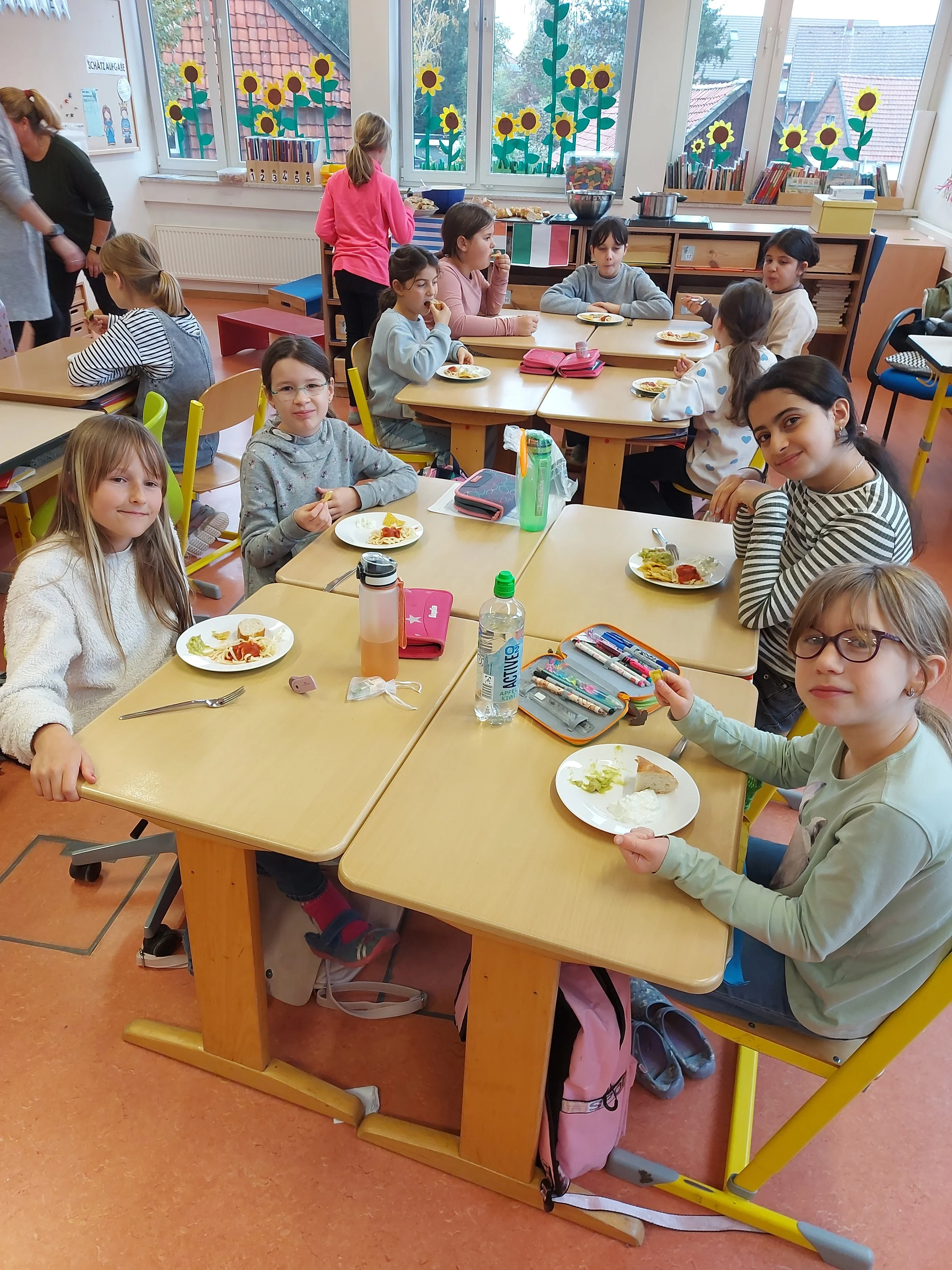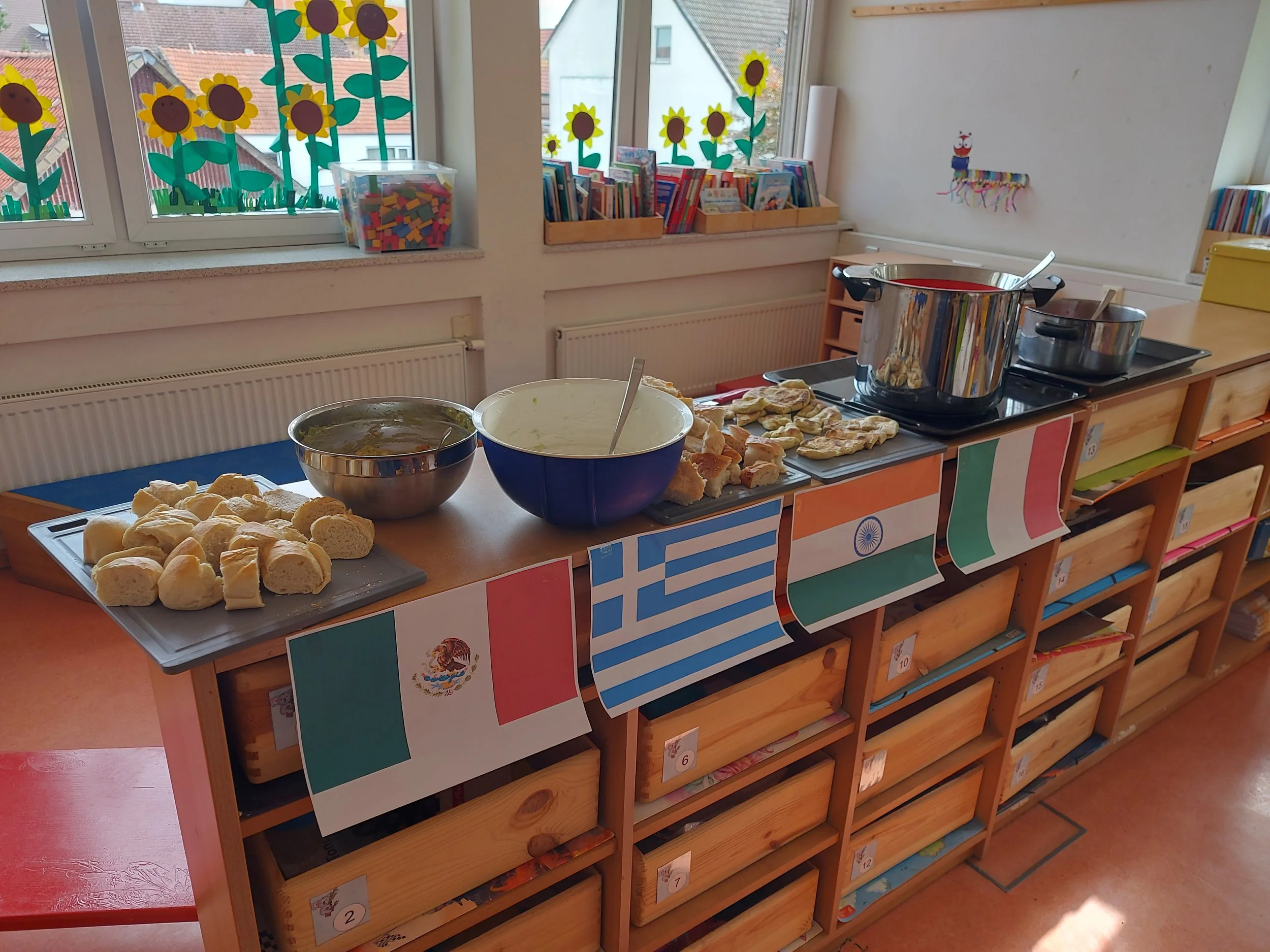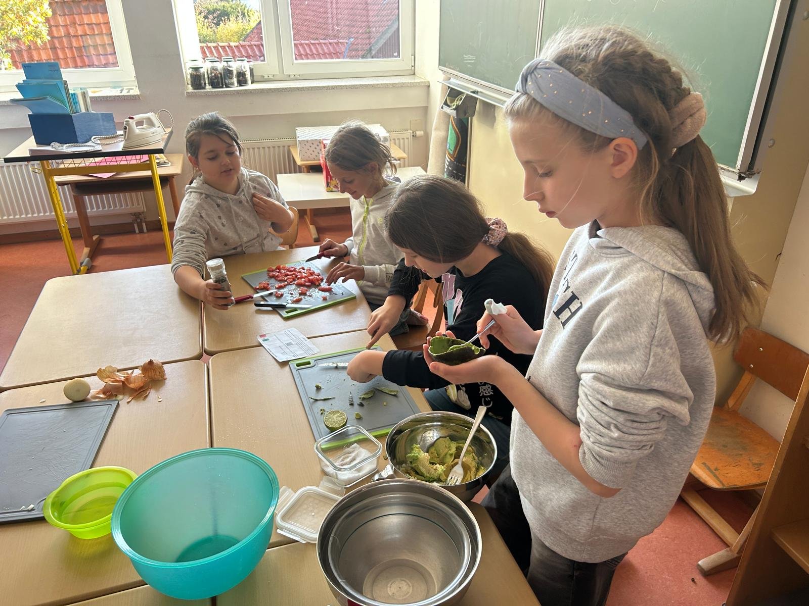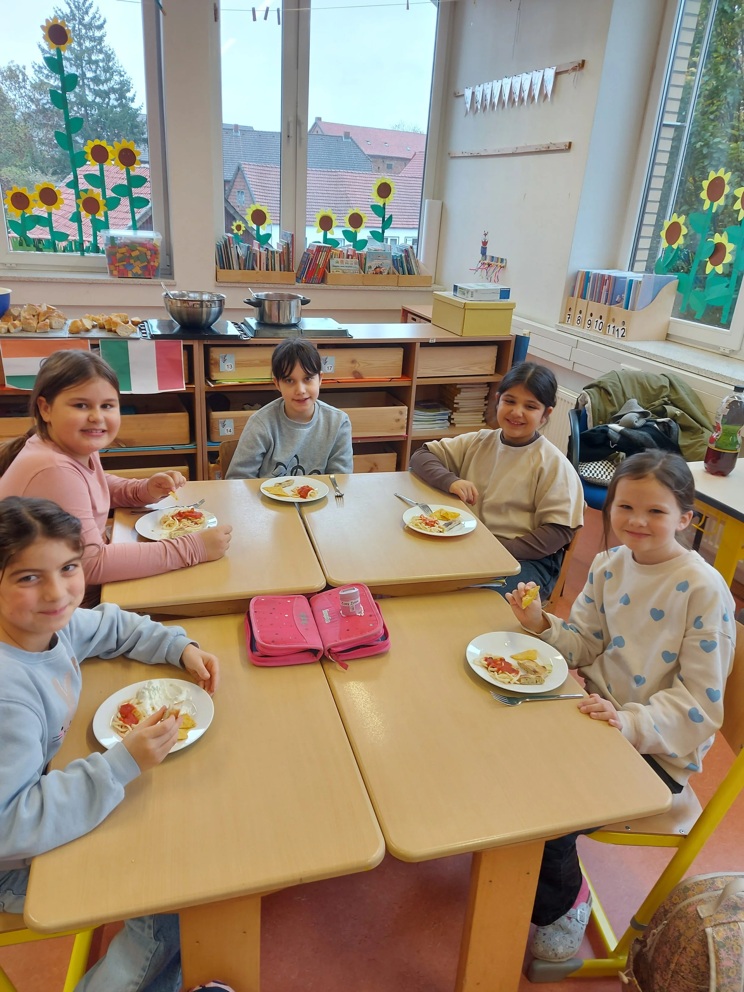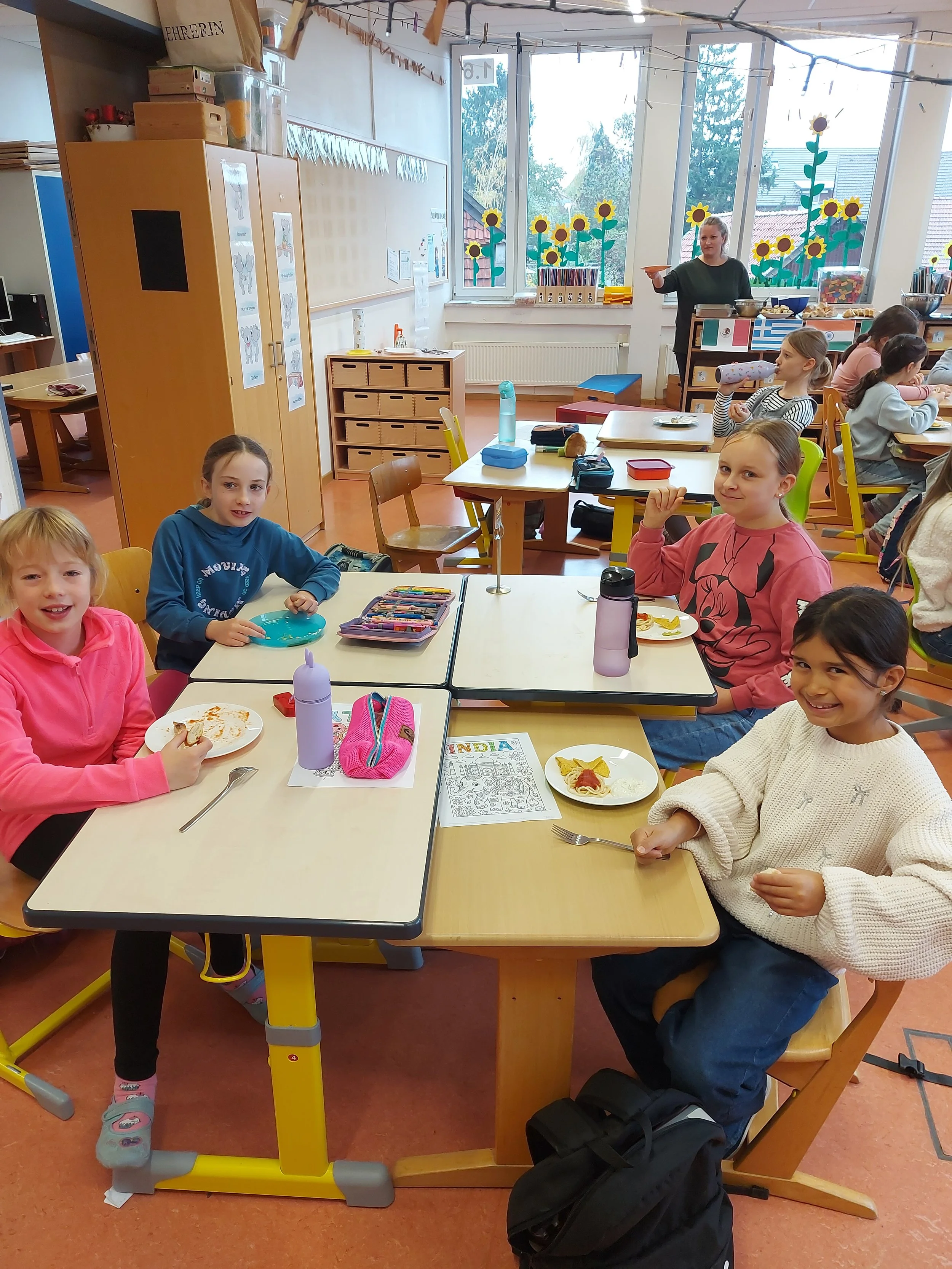 Die Schülerinnen und Schüler arbeiteten kreativ und handlungsorientiert: Es wurde gebastelt und gemalt sowie Dinge eingeübt und präsentiert. Besonders viel Freude hatten die Kinder beim Kochen und Backen typischer Spezialitäten der jeweiligen Länder. So konnten sie nicht nur Neues über Kultur, Natur und Menschen erfahren, sondern auch internationale Köstlichkeiten ausprobieren.